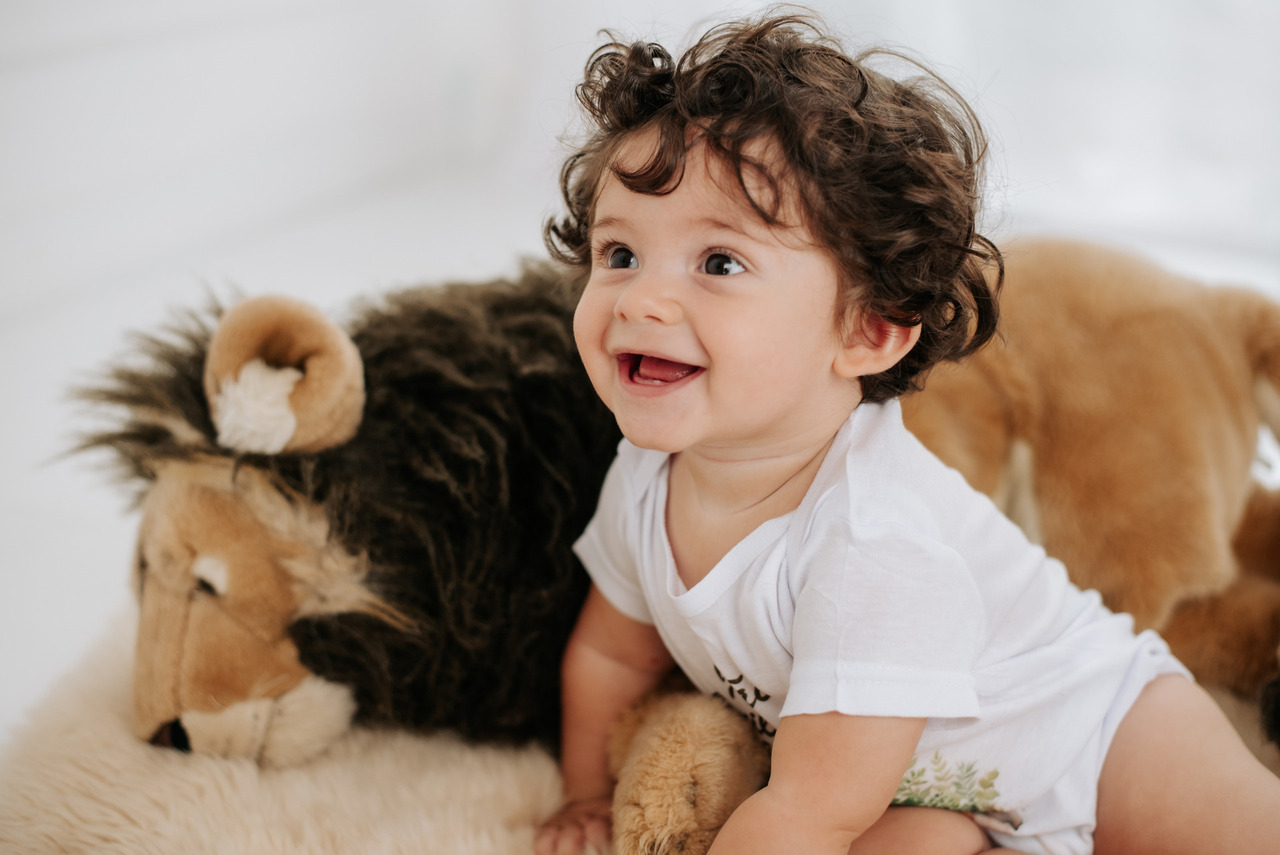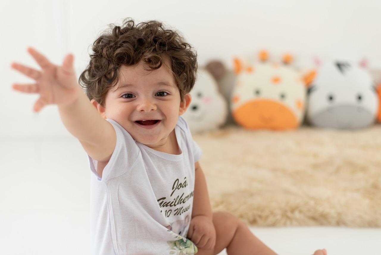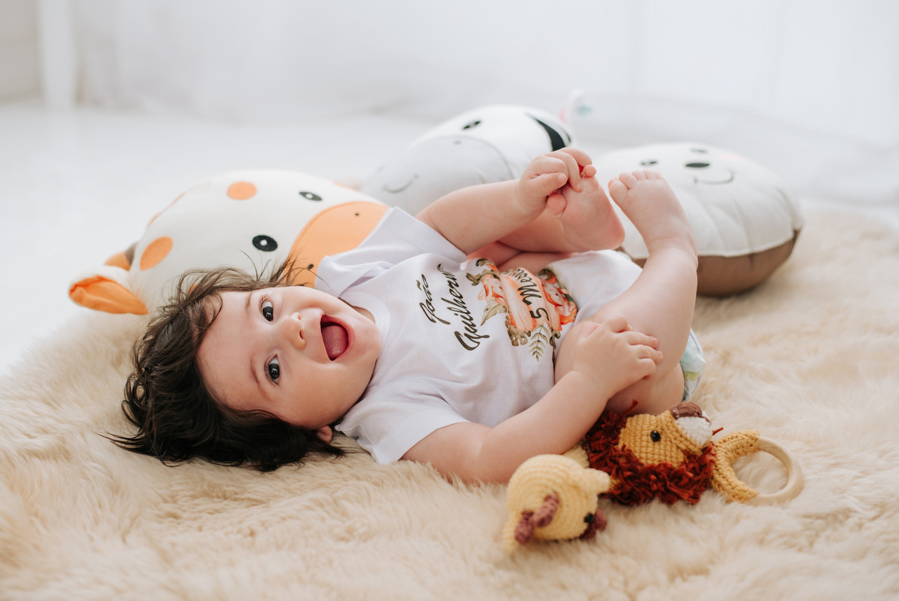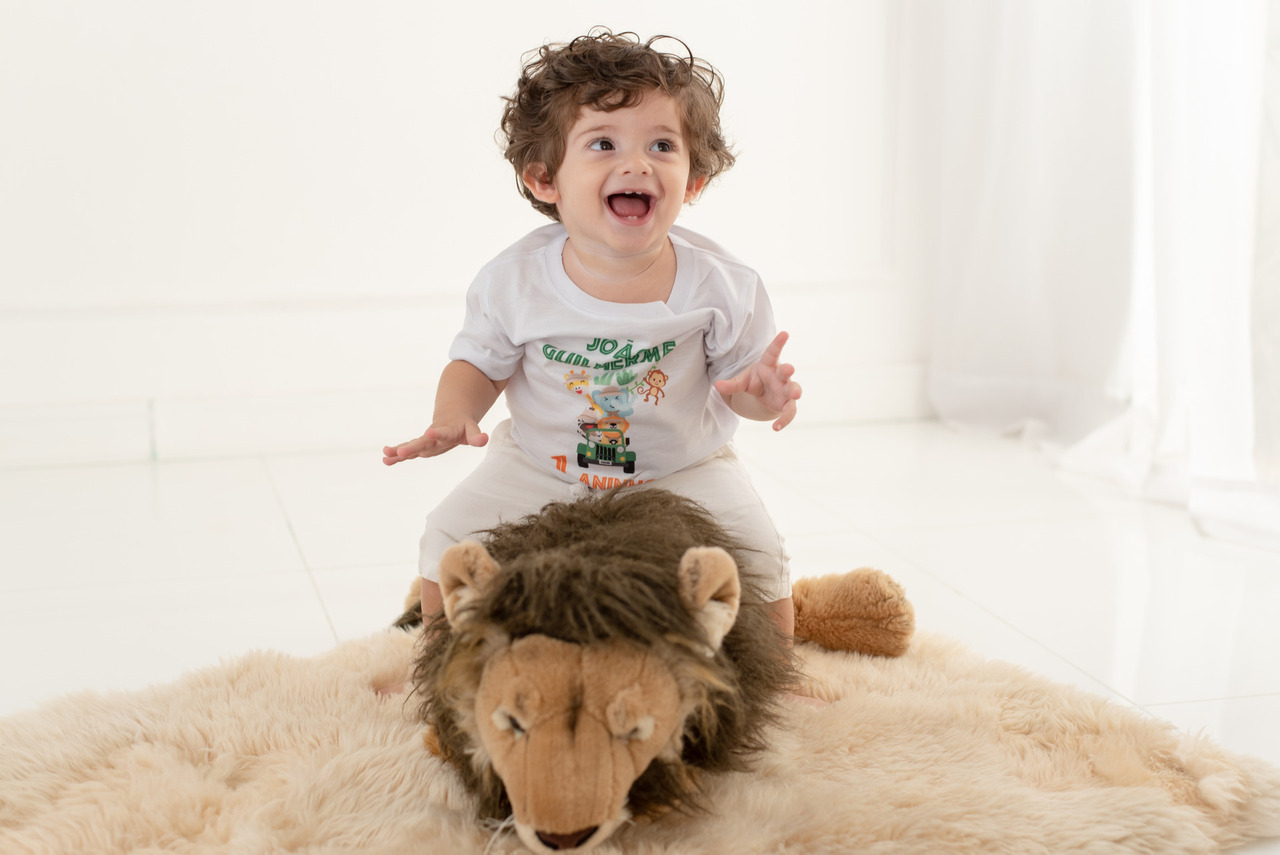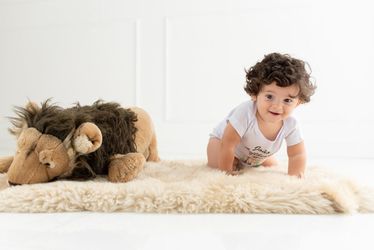 Registramos toda sua evolução mês a mês com seus brinquedinhos e conseguimos capturar todas as novas interações e aprendizados ao longo de 1 ano. Veja como o tempo passa rápido...