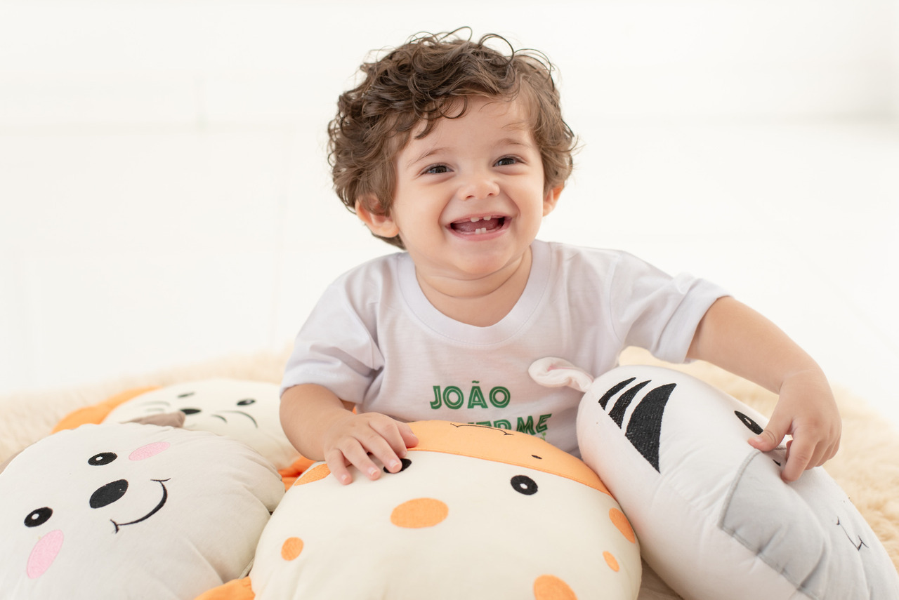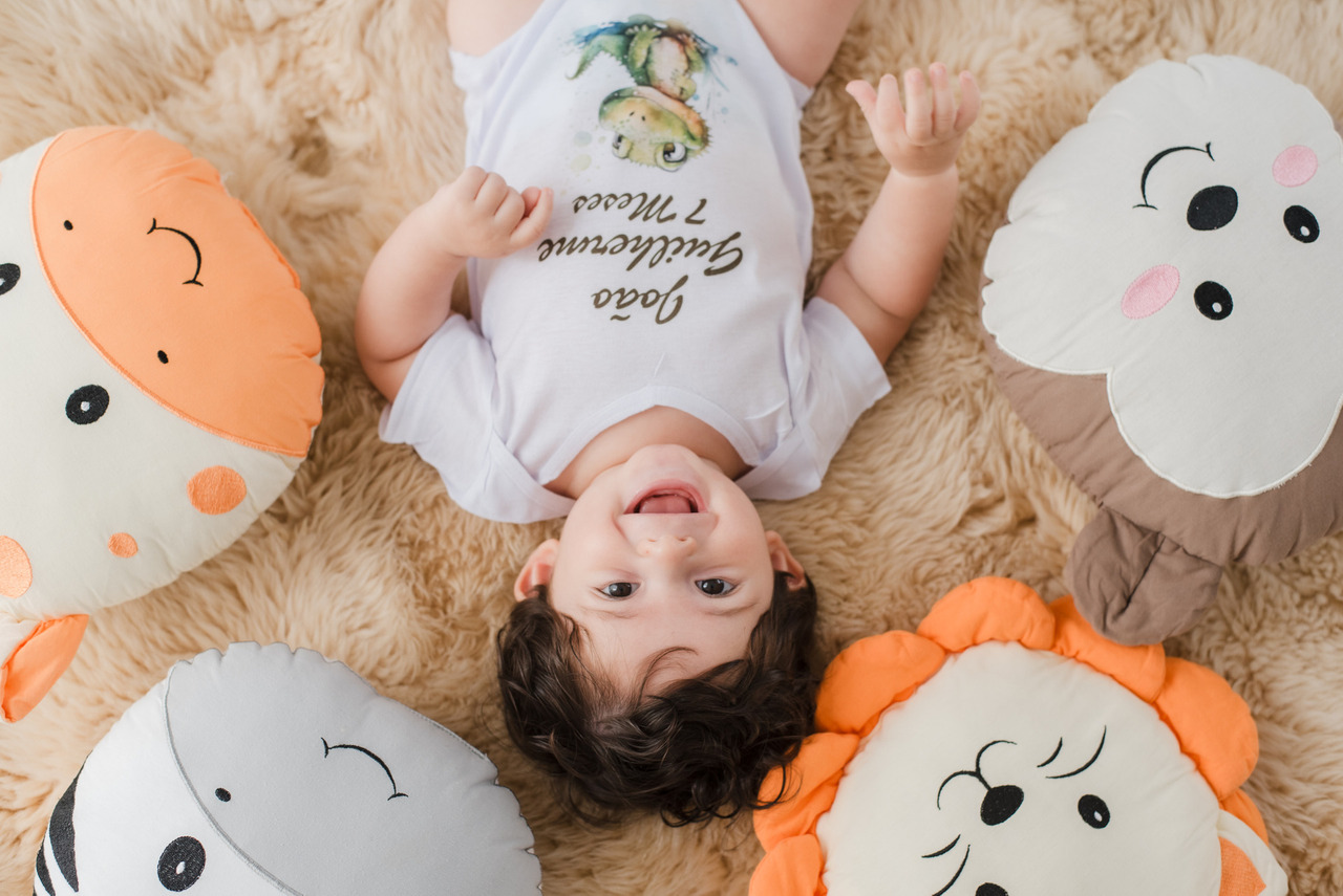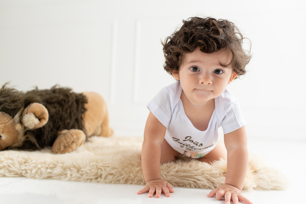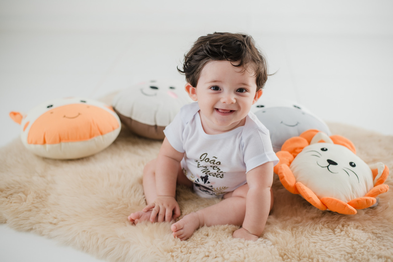Registramos toda sua evolução mês a mês com seus brinquedinhos e conseguimos capturar todas as novas interações e aprendizados ao longo de 1 ano. Veja como o tempo passa rápido...