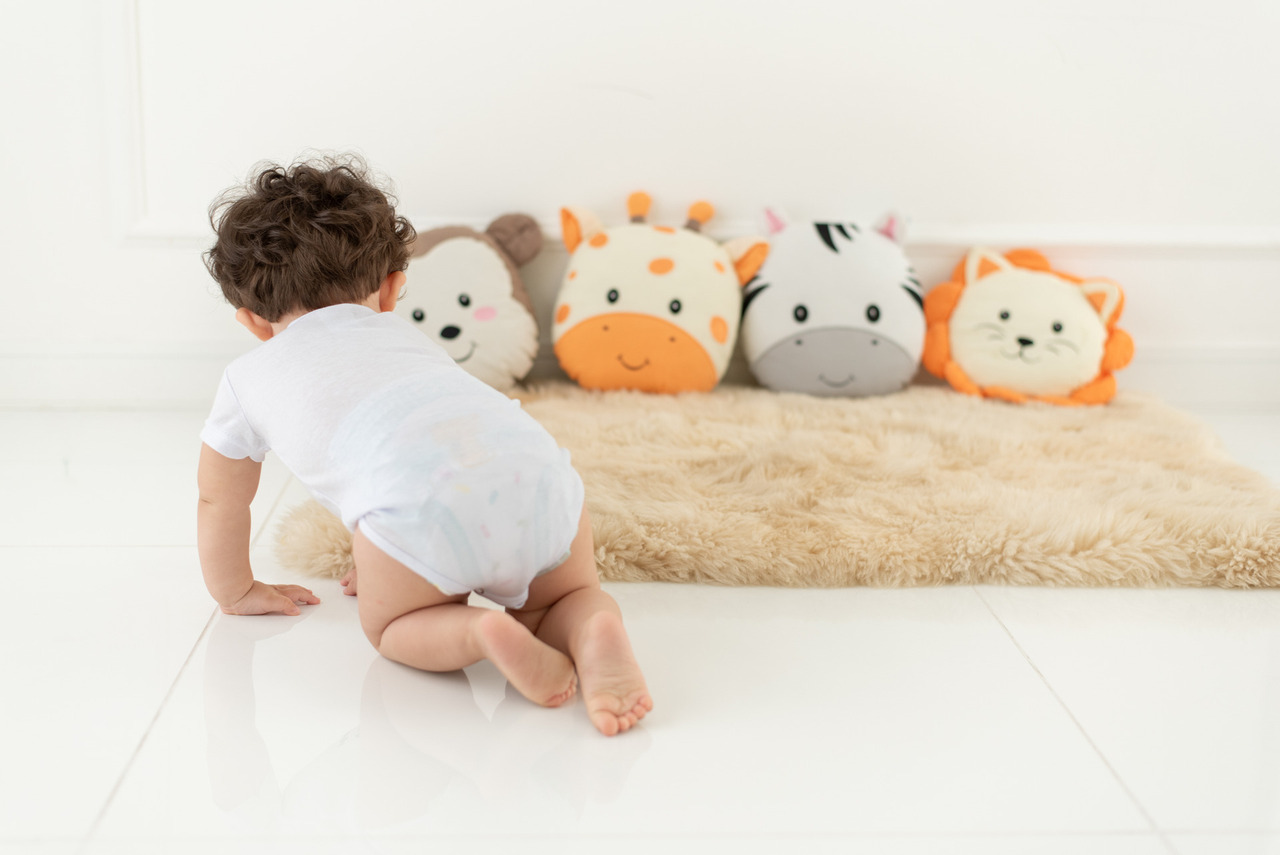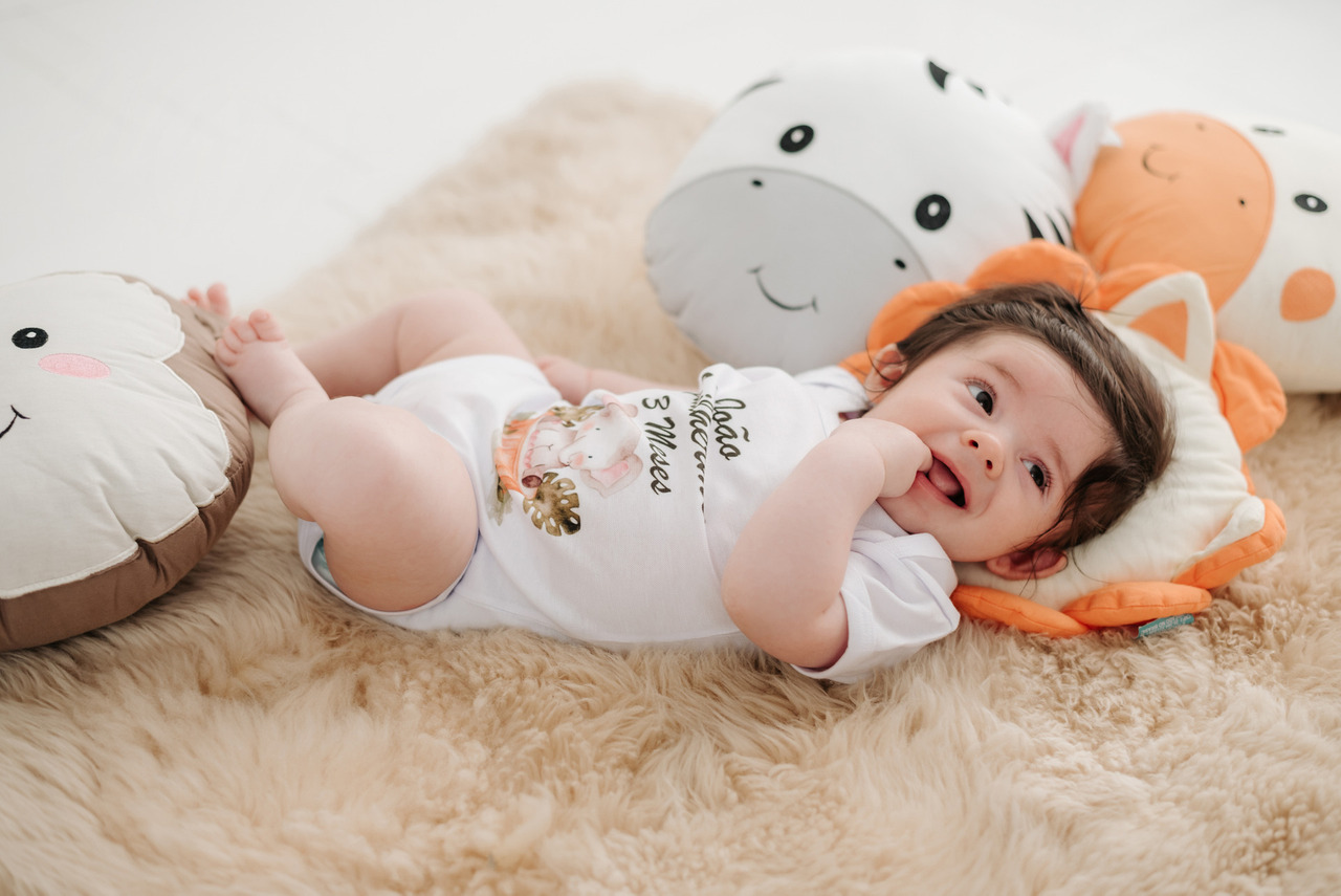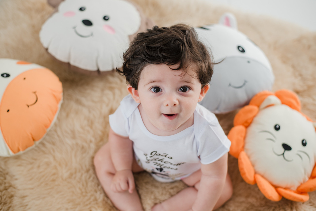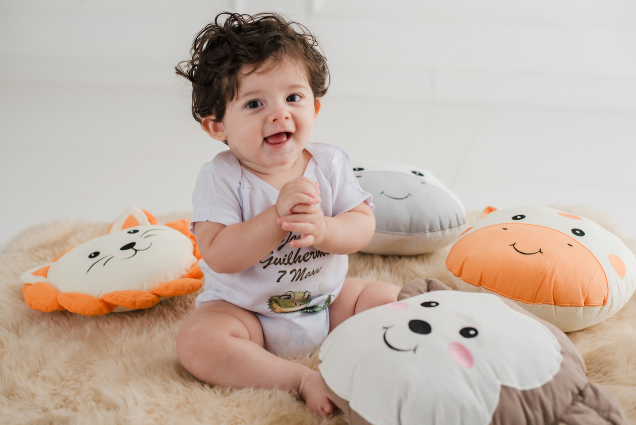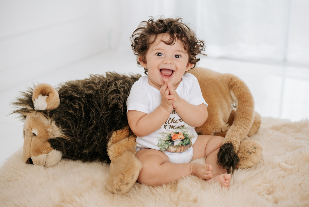 Registramos toda sua evolução mês a mês com seus brinquedinhos e conseguimos capturar todas as novas interações e aprendizados ao longo de 1 ano. Veja como o tempo passa rápido...